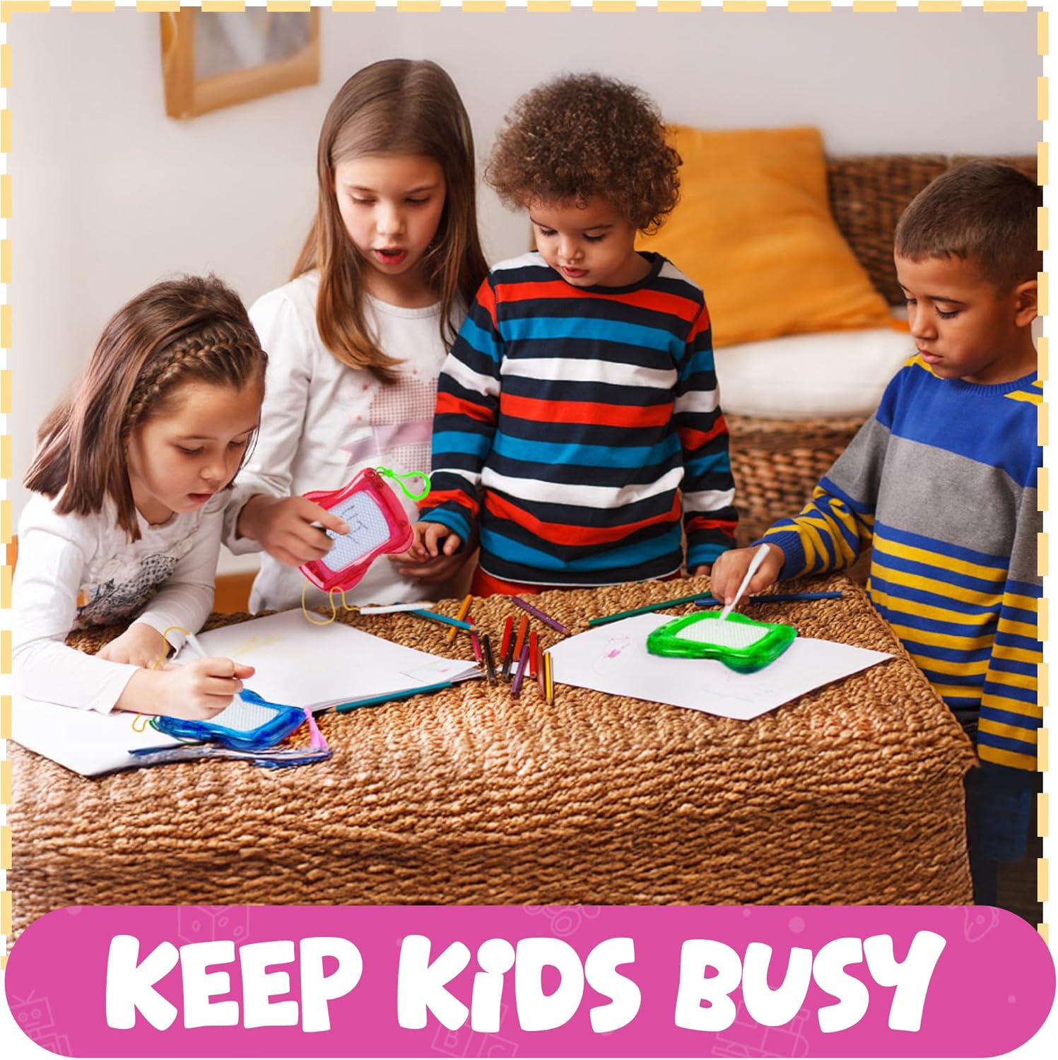 Fancy a no-fuss art kit? Our mini doodle boards—a cheeky pack of 12—come in wild hues (crimson, teal, lime, lilac) for tiny Picasso wannabes aged 3+. Slip ’em into backpacks—boom: instant sketch spree. Zero ink blunders, no rogue paper piles—just untamed doodling mania. On dreaded car rides when whines start, clip one to the bag, hand it over and… silence reigns. They weigh less than your average paperback: draw, erase, draw—repeat. Each scribble flexes fine motor skills, sharpens that noodle of theirs. Measuring 10 x 26 x 8cm, these pint-sized wonders are individually wrapped like secret loot. And forget sweets—party favours or stocking fillers that won’t send them hyper. So who needs sugar anyway? “They were the hit of the bash,” raved one mum. A handful noted 11 boards instead of 12—annoying? Maybe. But quality stays top-tier. Trust me—parents are grateful. Value? Through the roof. Go on, surprise the little monsters.